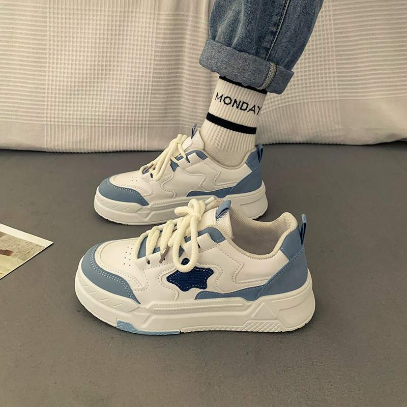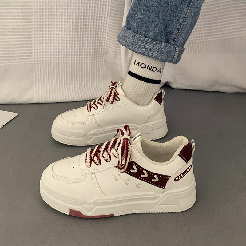 学生の白い靴の女性の春秋の港の風は高くなってカジュアルな靴の運動靴の2023新型のひものビスケットの底の靴を結びます。