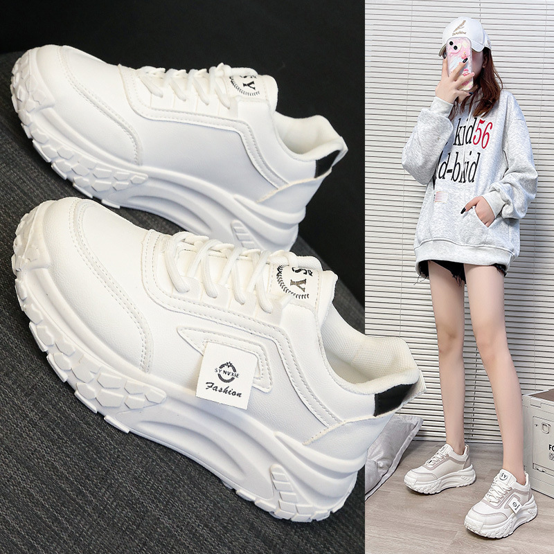 内高のお父さんの靴の女性の2023秋の新型の百合の韓国版の厚い底のビスケットのカジュアルな靴の白い靴