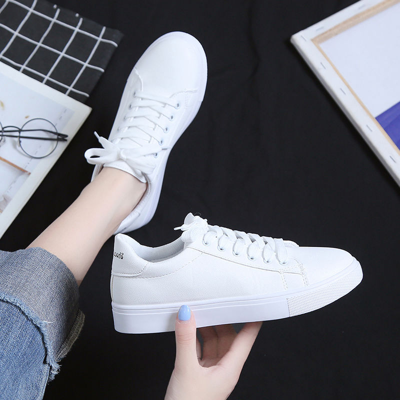 2025年春のストリートスタイルの女性用白い靴、平底、新しい韓国スタイルの女性用スニーカー、学生用ランニングカジュアルシューズ、多用途