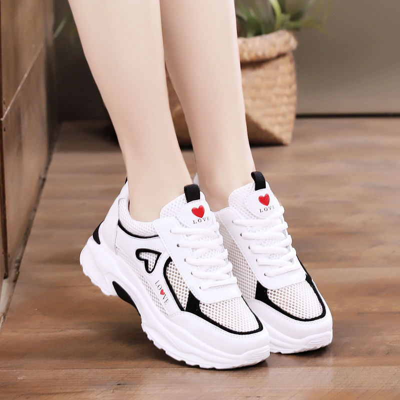 お父さんの靴2023夏の新型の女性靴ins通気性の厚い底のネットの薄いタイプのネットの靴の運動のレジャーの白い靴