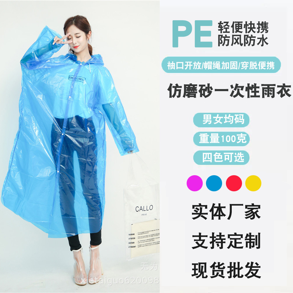 使い捨てレインコート卸売りpe使い捨てレインコート屋外旅行連体成人レインコート現物レインコート30グラム