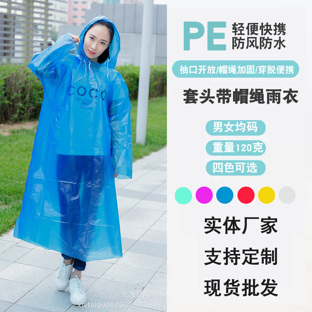 大人用厚手プルオーバーハット付きレインコートPE使い捨てレインコート厚手黄山観光レインコート70g帽子紐付きポンチョ