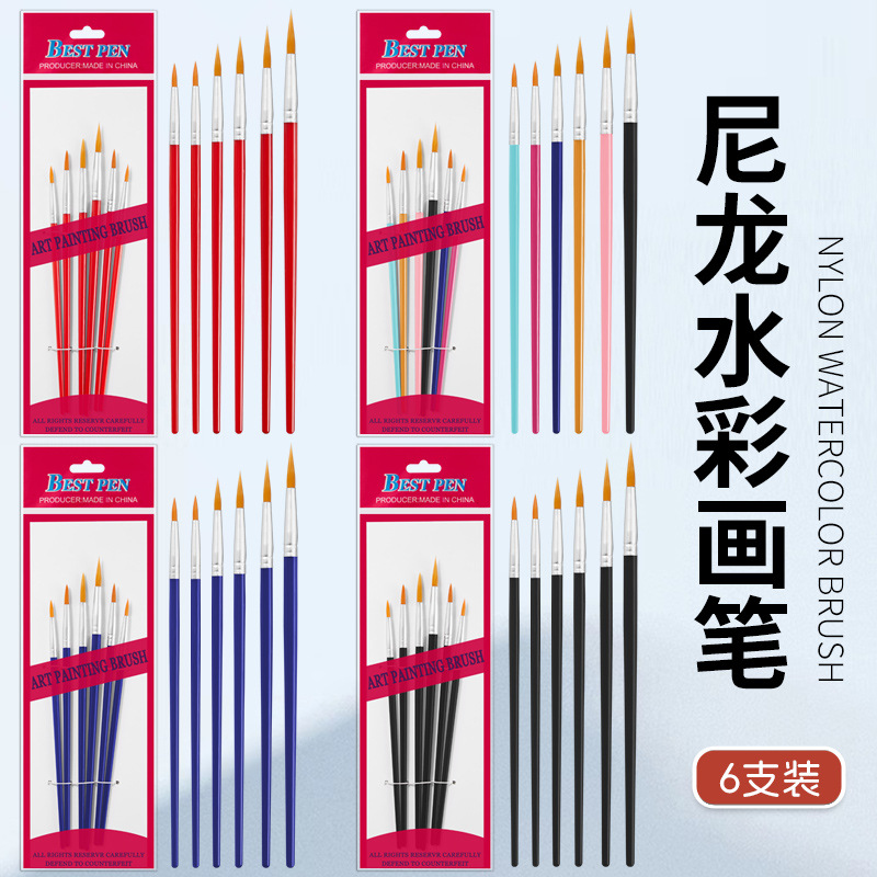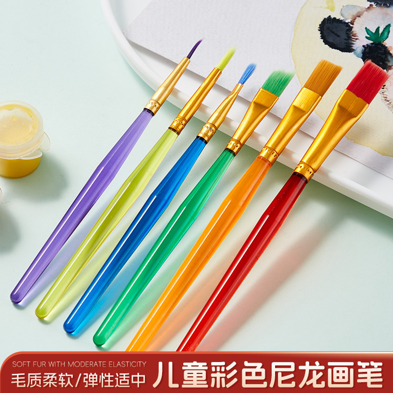 クロスボーダー6本入ナイロン毛丸头絵ブラシ子供用油絵ペンセット美术絵画アクリル水彩絵の具ペン