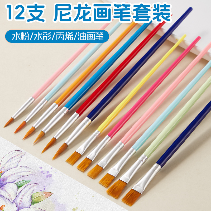 越境プラスチック竿12本カラー油絵ペンセットナイロン油絵ペンセット子供美術絵画ペン用品