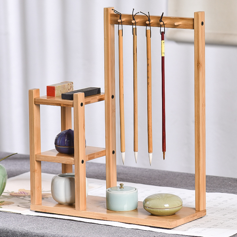 創意はシンプルで、楠竹の毛筆をかけて、物を置く棚の文房四宝の学生が字を練習します。