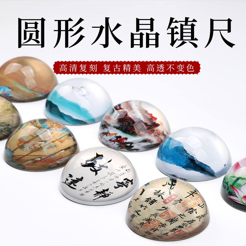 衛庄水晶新型ガラス半球鎮紙置物ゴッホ油絵対外貿易起爆事務室置物工芸品