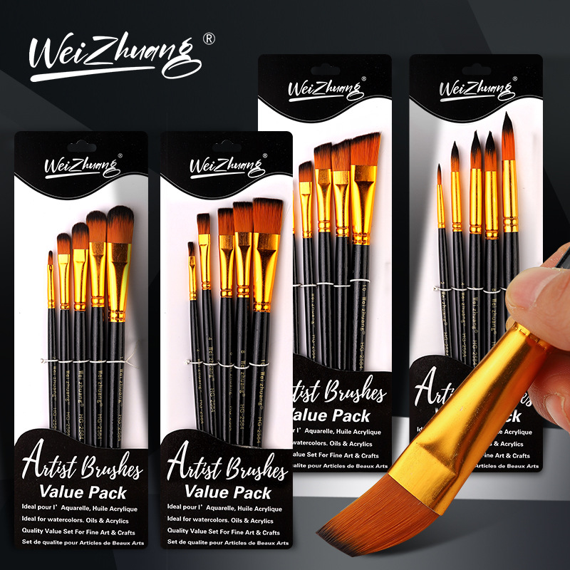 黒い木の棒5本の絵筆セット水彩絵筆ナイロン毛絵筆ブラシ学生絵画油絵ペン卸売り