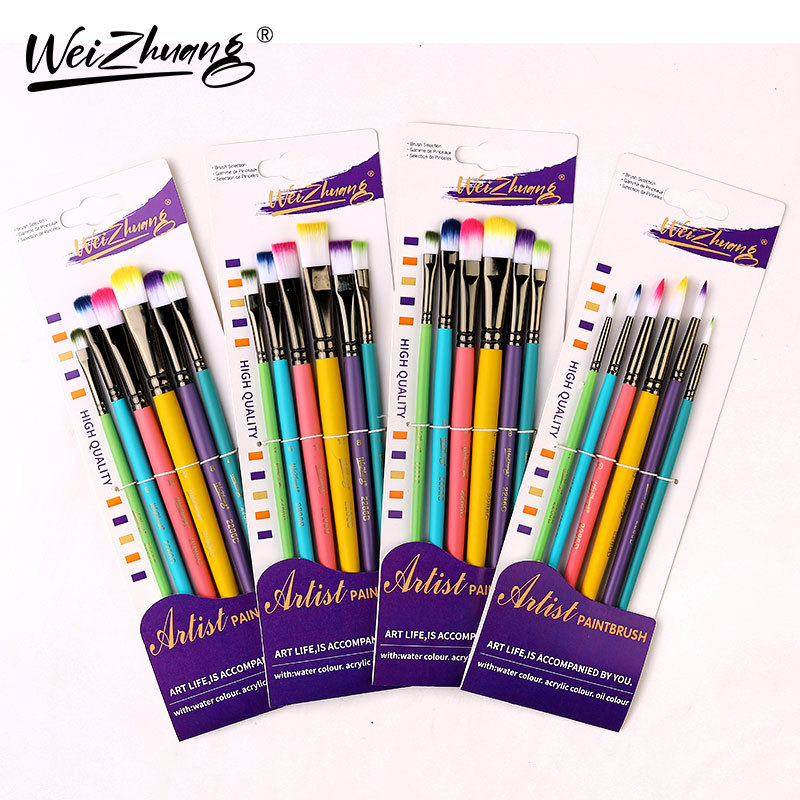 クロスボーダー良質ナイロン毛6本カラー油絵水粉子供diy落書き絵画ブラシセットアクリル絵筆