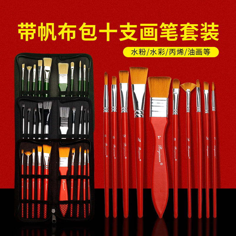絵筆セット10点セット多目的携帯ナイロン毛水彩ブラシアクリル水彩絵筆キャンバスセット