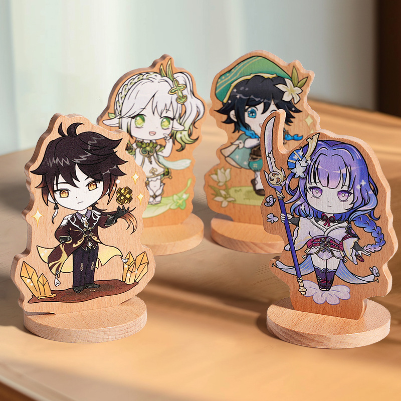原神周辺木製キャラクタースタンドウェンディ・チョンリブナ材デスクトップフィギュアオーナメントコレクション吊り絵誕生日ギフト