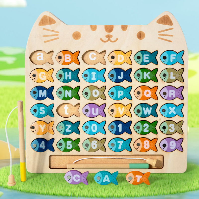 クロスボーダー木製早教色分類啓蒙数字アルファベット認知ペア磁気釣りゲーム子供玩具