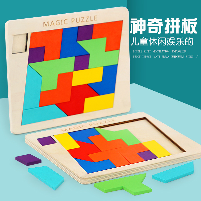 木製180枚のクリエイティブパズル0.55児童早教益知能百変立体形状七巧板玩具