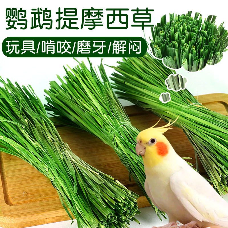 1688オウムは草を食べておもちゃをかじって退屈を解消します。