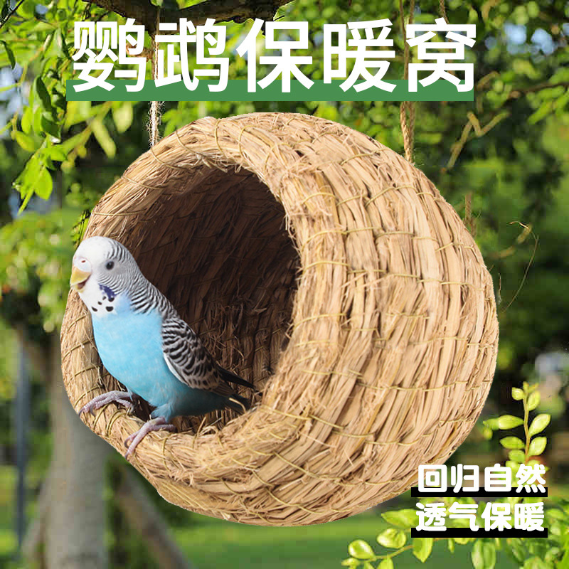 鳥の巣のオウムの眠りの巣冬の保温の巣の鳥かごの外挂けの草はボタンの和尚の玄鳳を編んで冬の専用の鳥の巣を過ぎます。