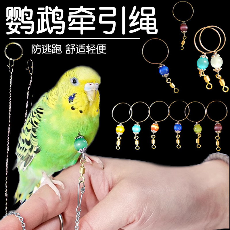 オウムの牽引縄の首のカバーのステンレスの飛び縄の玄鳳の牡丹の虎の皮の八兄の足の鎖は鳥のチェーンを結んで鳥の訓練を散歩します。