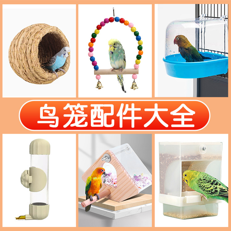 オウムの用品の鳥かごの部品の大全の刺繍の眉の装飾の部品の入浴室の草の巣の水を飲んで食器を与えます。
