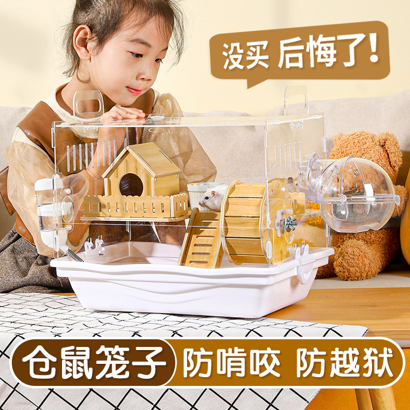 金糸熊蒼ハムスターケージアクリル透明飼育箱豪華別荘専用2本共同ケージ小型