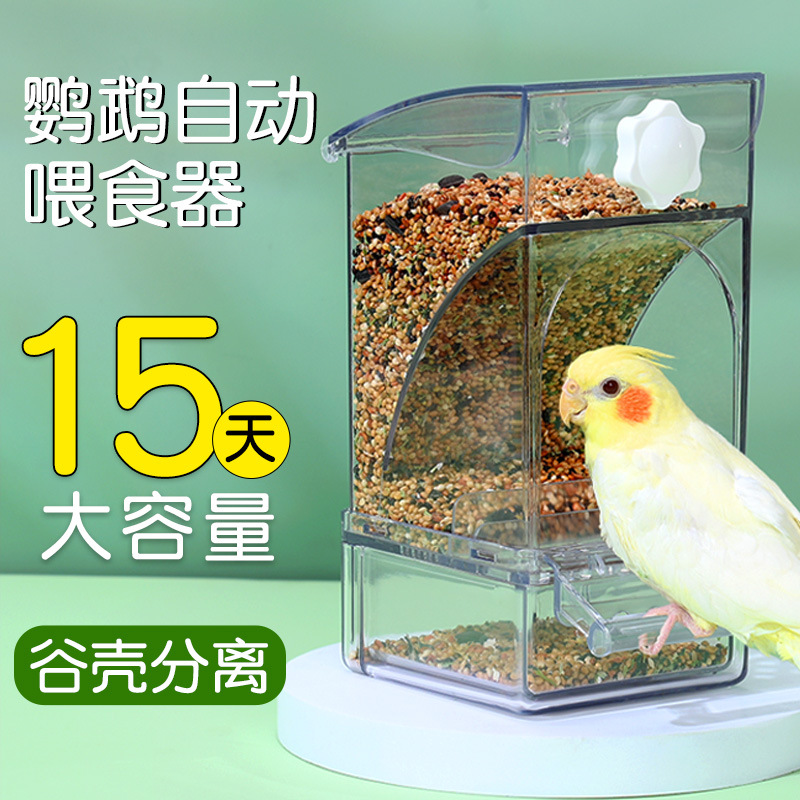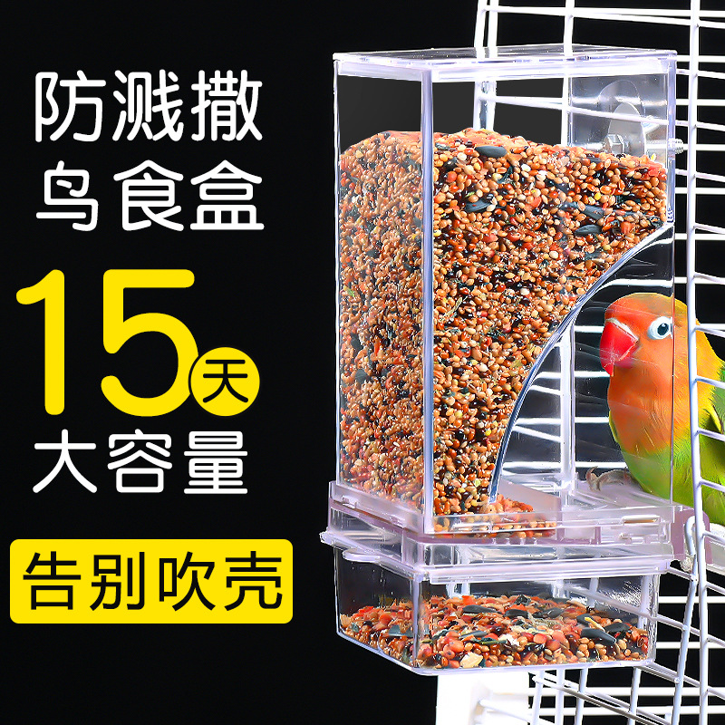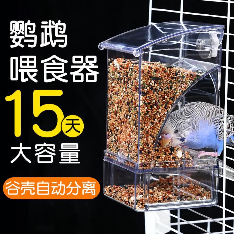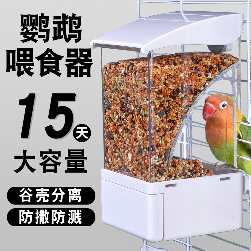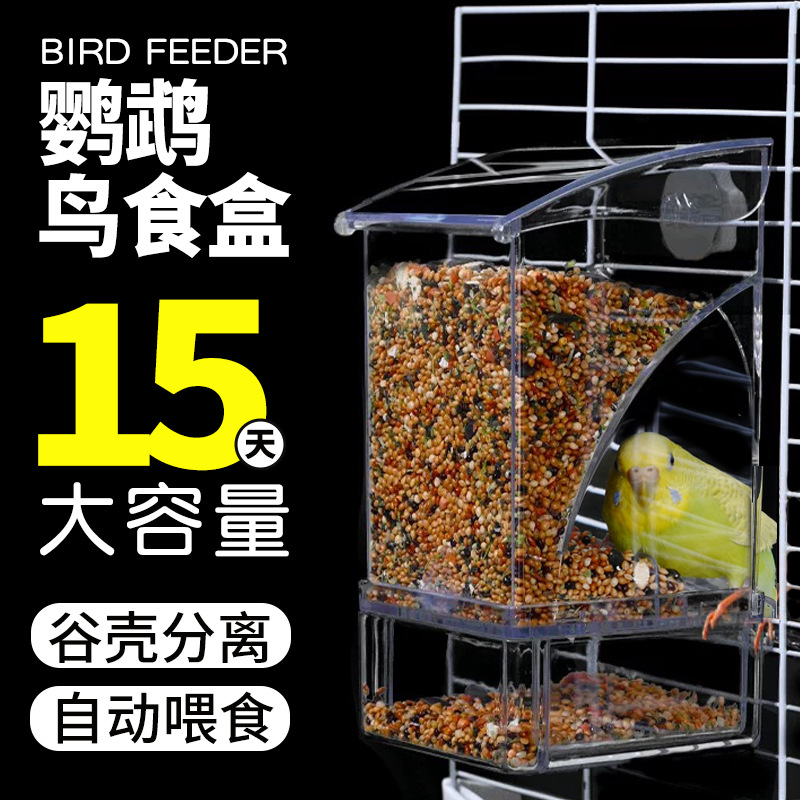 鳥食箱防撒一体型オウム自動給餌器谷殻分離式鳥食給餌器小鳥防飛散品