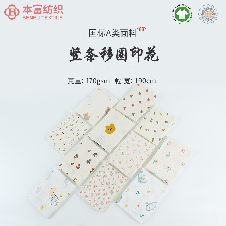 70% 竹繊維30% 綿二重ガーゼプリントa類ベビー漫画赤ちゃん服パジャマ唾タオル生地