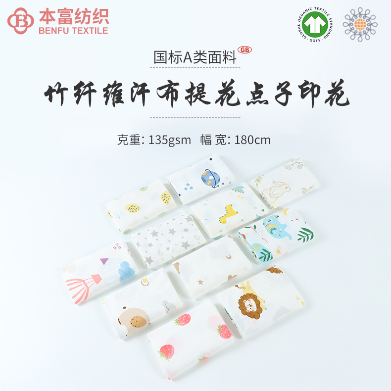 竹繊維汗布ジャカード点プリント布a類夏通気防蚊ズボンtシャツ半袖家庭服生地