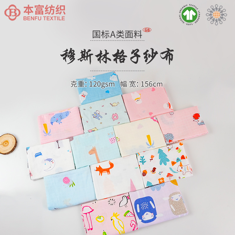 120g全綿格子二重ガーゼa類乳幼児用バッグ一口タオルパジャマ家庭服生地現物