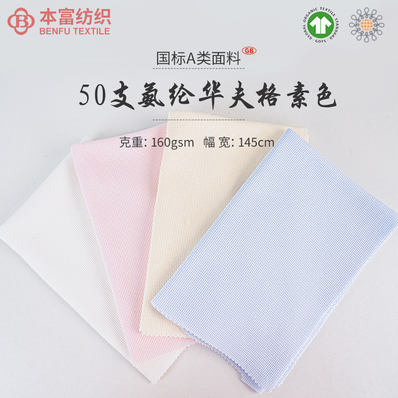 キロ価格50本のスパンデックスワッフルの無地の子供が家庭服のガードルセットtシャツの服の生地に登ります。