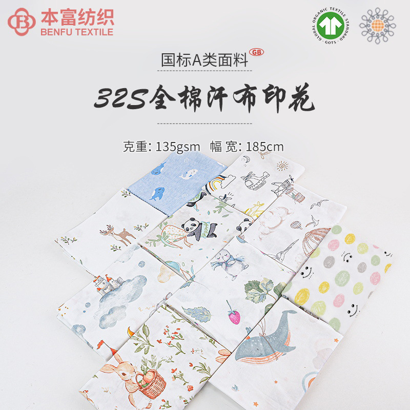 食毛涼感32s全綿汗布プリント春夏薄手tシャツ半袖ホームウェアa類純綿子供服生地
