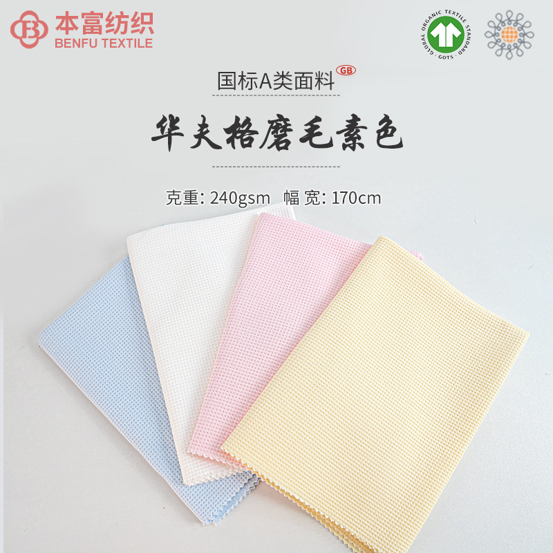 綿95、スパンデックス5、ワッフル起毛無地、カテゴリーA、ベビー服、ホームウェア、寝袋生地、ストレッチ生地、在庫あり
