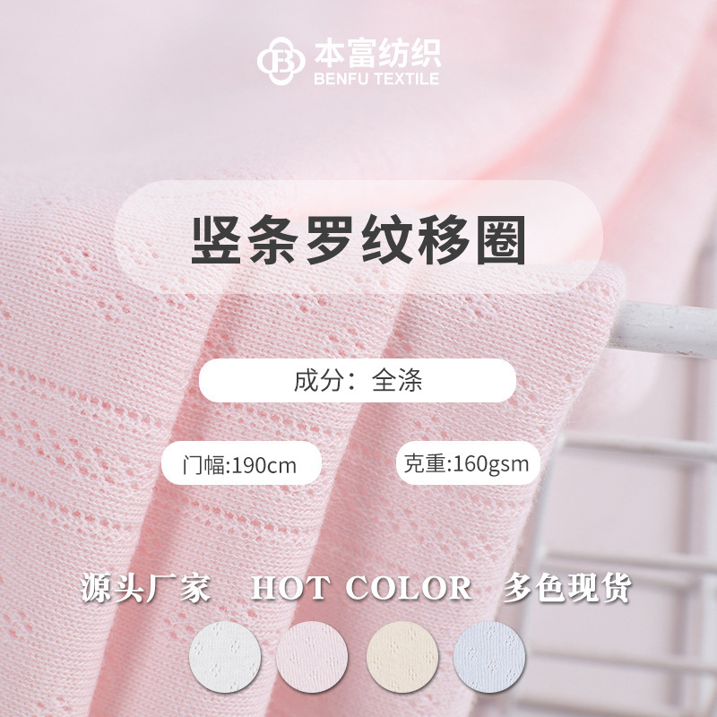 ポリエステル縦縞リブ移動生地、小さな新鮮な無地リブホーム服、パジャマ、Tシャツ衣料品生地在庫あり