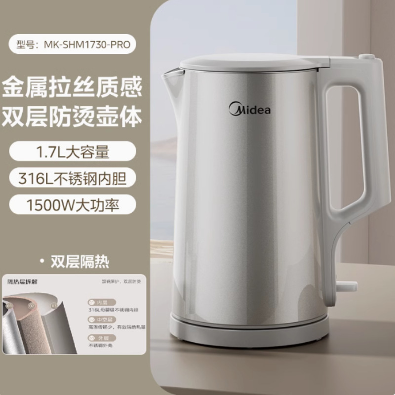 美的電気ケトル 家庭用 1.7L 大容量電気ケトル ケトル 自動電源オフ MK-SHM1730-PRO