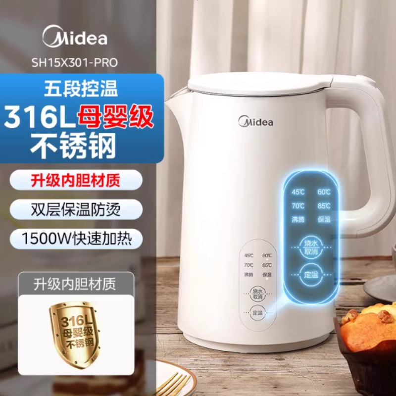 美電気ケトル316Lステンレス内胆1.5L側顕温度知能自動停電15X301-PRO