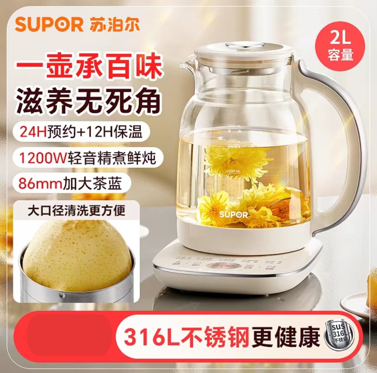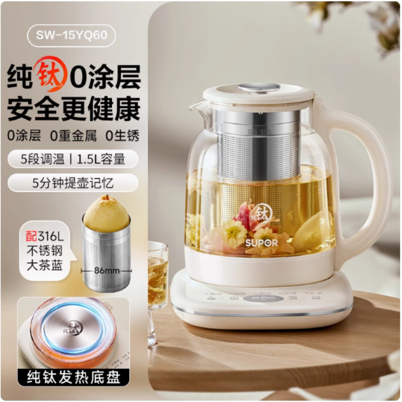 蘇泊爾純チタン養生ポットSW-15YQ60家庭用多機能316ステンレスオフィスガラス花ティーポット