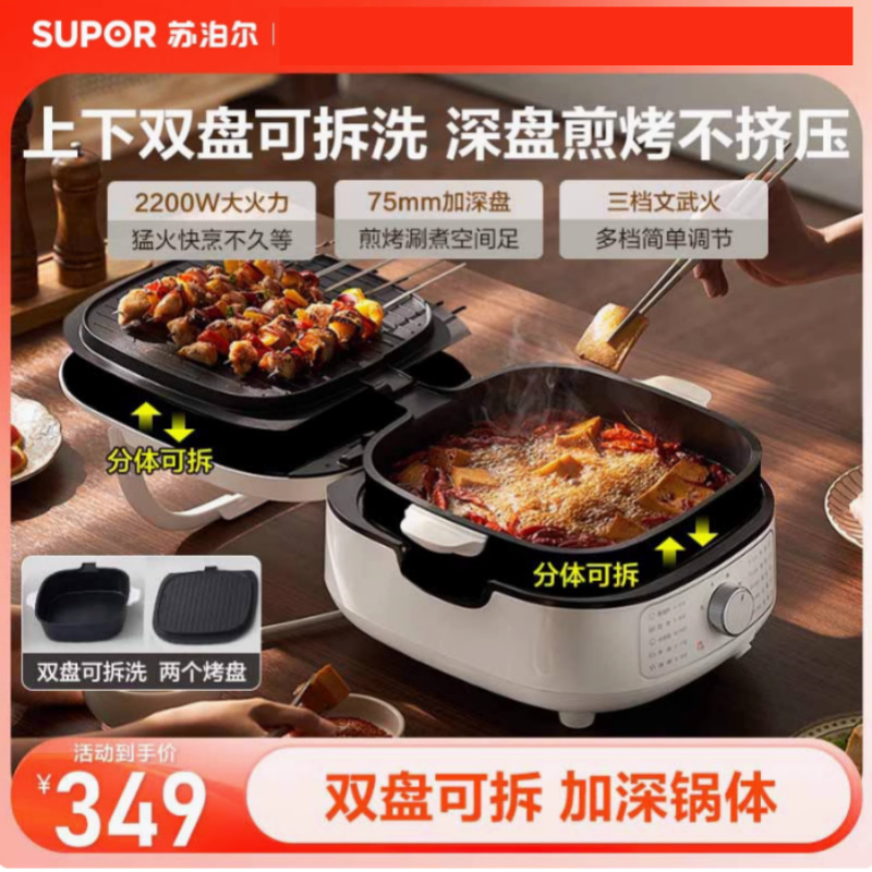蘇泊爾電気焼き盤家庭用電気焼き炉多機能鍋焼肉一体分解可能焼き炉GJ4525P81