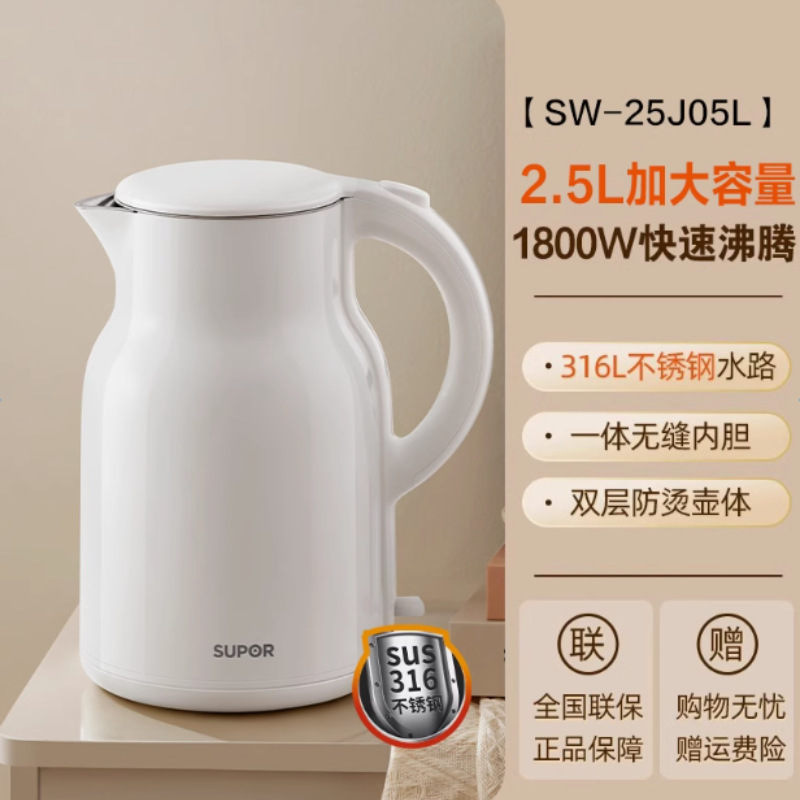 蘇泊爾電気ケトル2.5L容量316Lステンレスシームレス内胆防熱恒温保温SW-25J05L