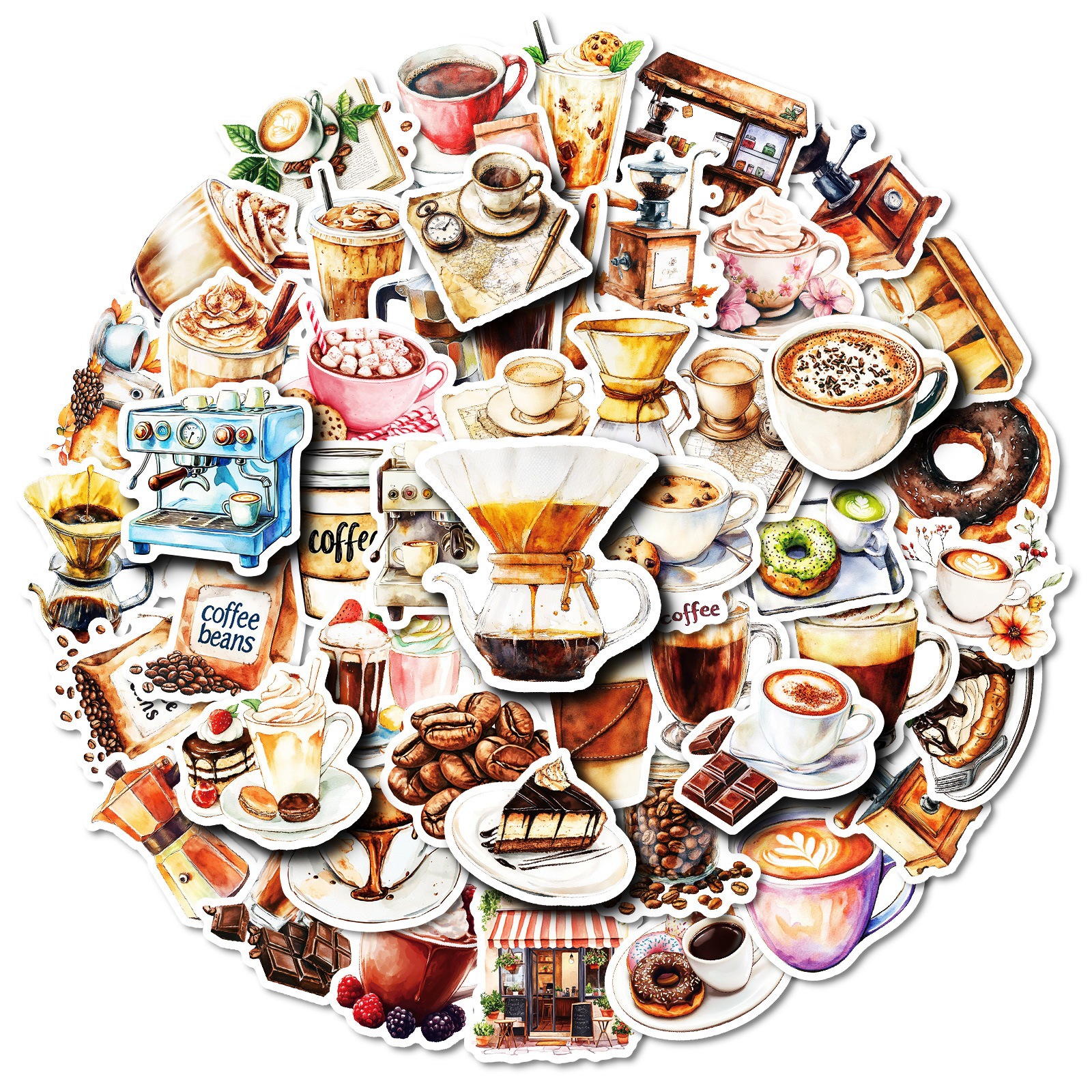 50枚のコーヒーテーマステッカー、Amazonクロスボーダーベストセラー、非繰り返しコーヒーステッカー、DIYクリエイティブハンドブック日記