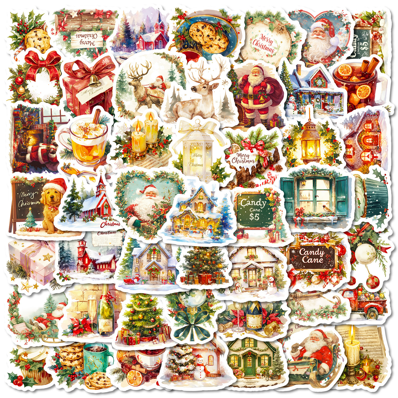 50 枚の暖かいクリスマス漫画落書きステッカー、暖かい雰囲気のキャンドル DIY スーツケースノートブックステッカー