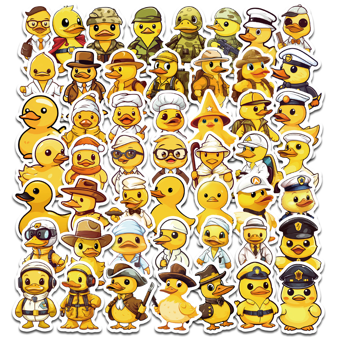 さまざまな小さな黄色いアヒルのかわいいステッカー 50 枚、漫画の国境を越えた新しい製品、インターネット有名人の小さな黄色いアヒルの動物落書きステッカー TEMU