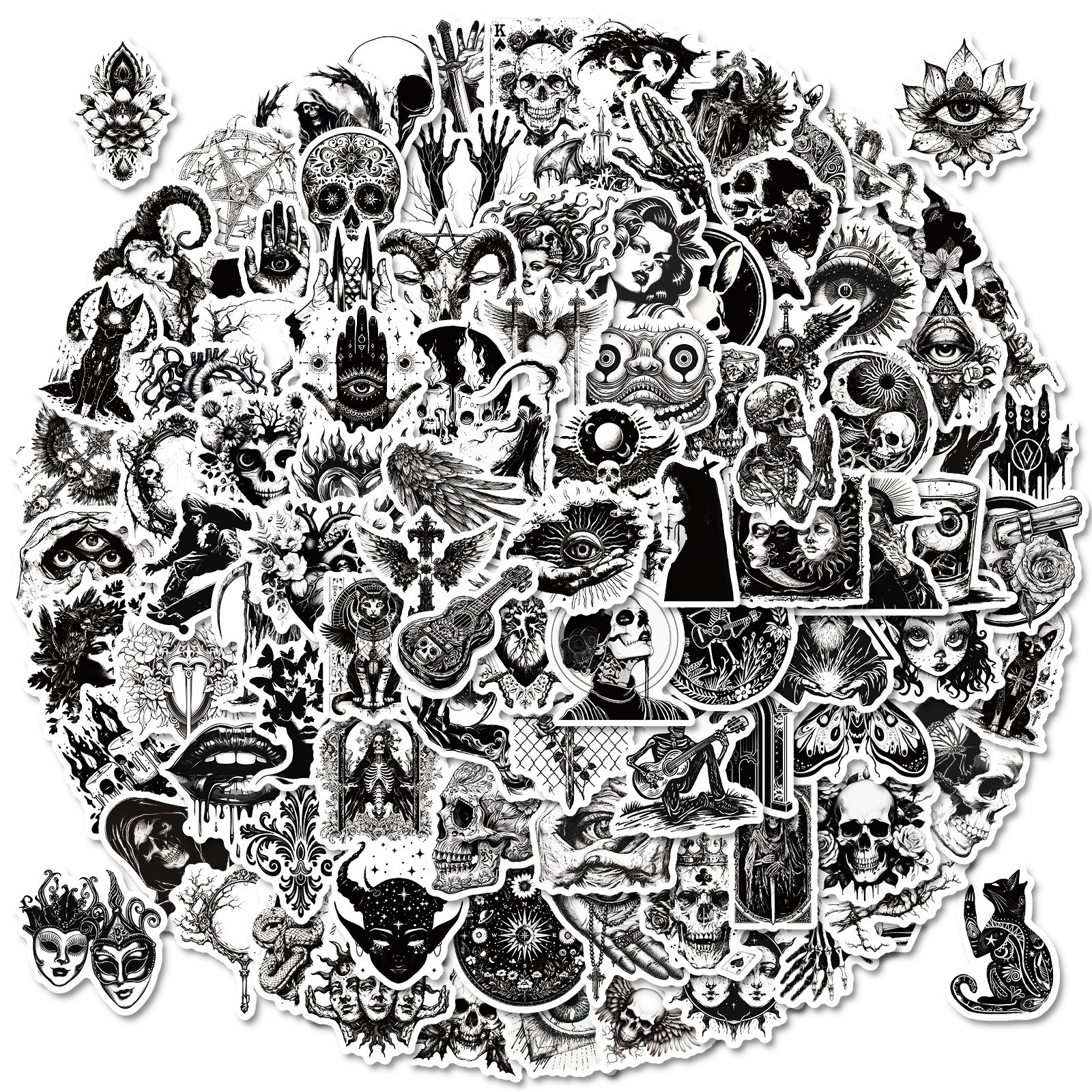 100 枚の黒と白のゴシックパンクスタイルの落書きステッカー荷物ラップトップスケートボード防水 DIY ステッカー