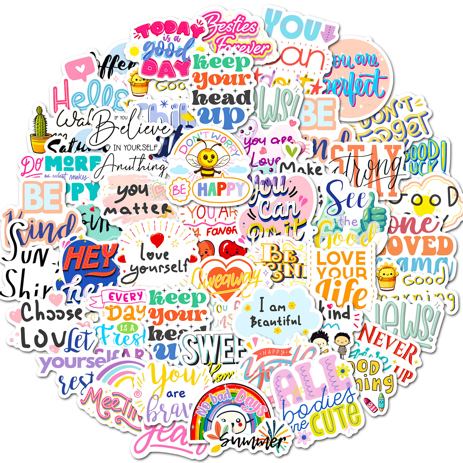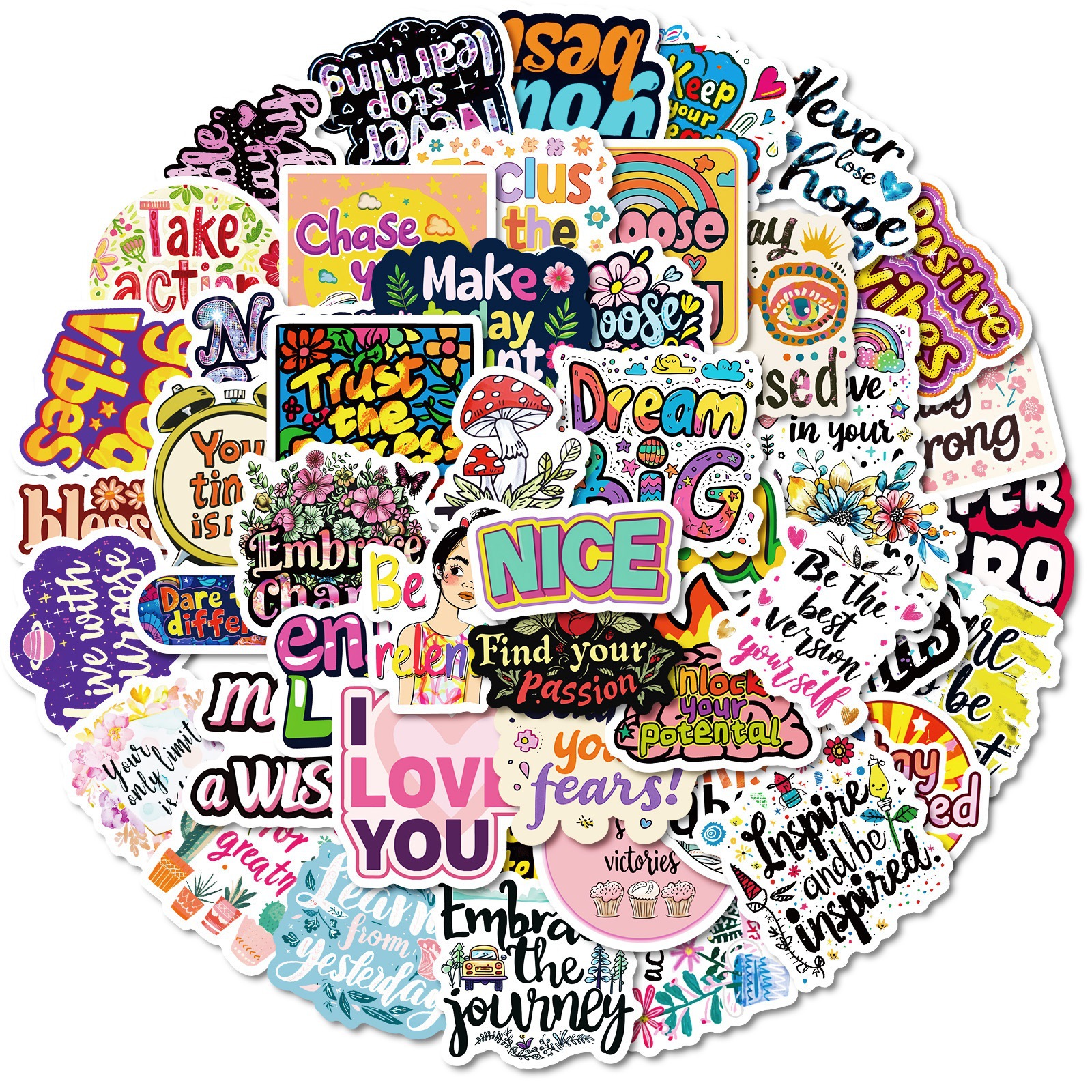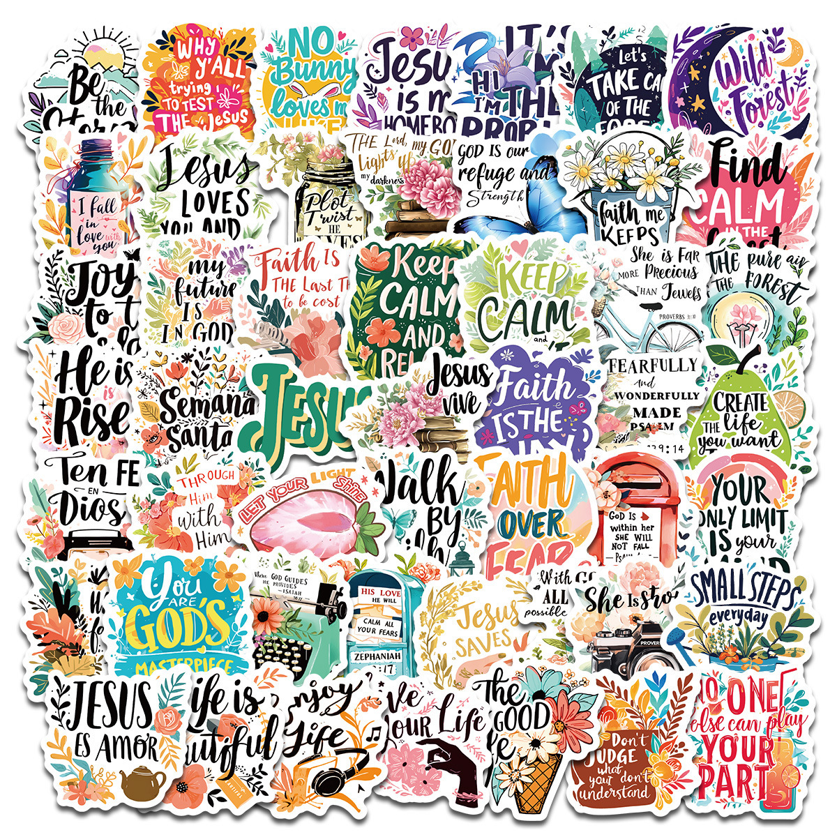 新しい聖書ステッカー 50 枚、創造的なポジティブなエネルギーのテキスト、短い文章、インスピレーションを与える英語の文章、防水ノートブックステッカー