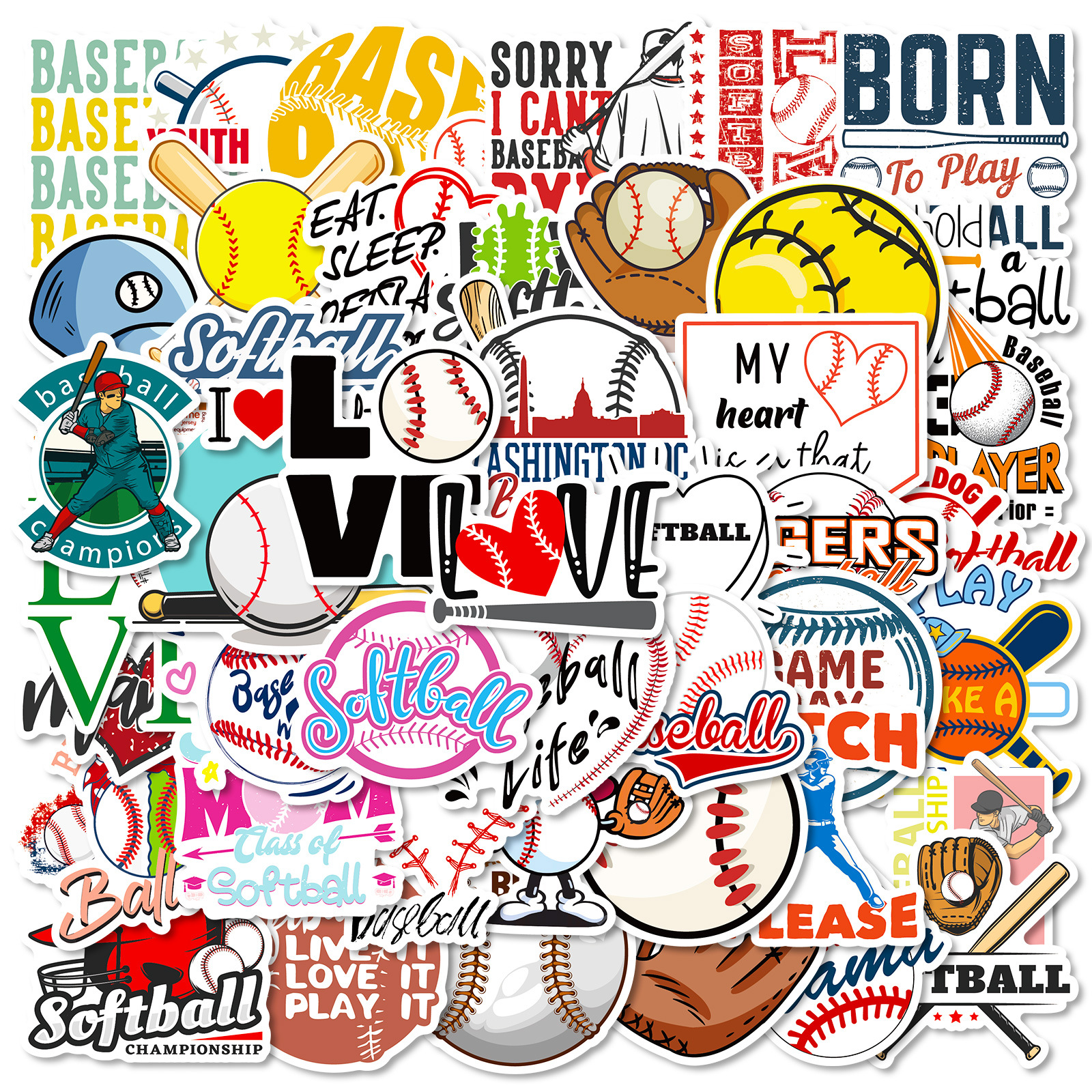 野球ミックスアンドマッチングステッカー50枚、ソフトボールクロスボーダーボールスポーツ落書きステッカー、スーツケーススケートボード防水ステッカー