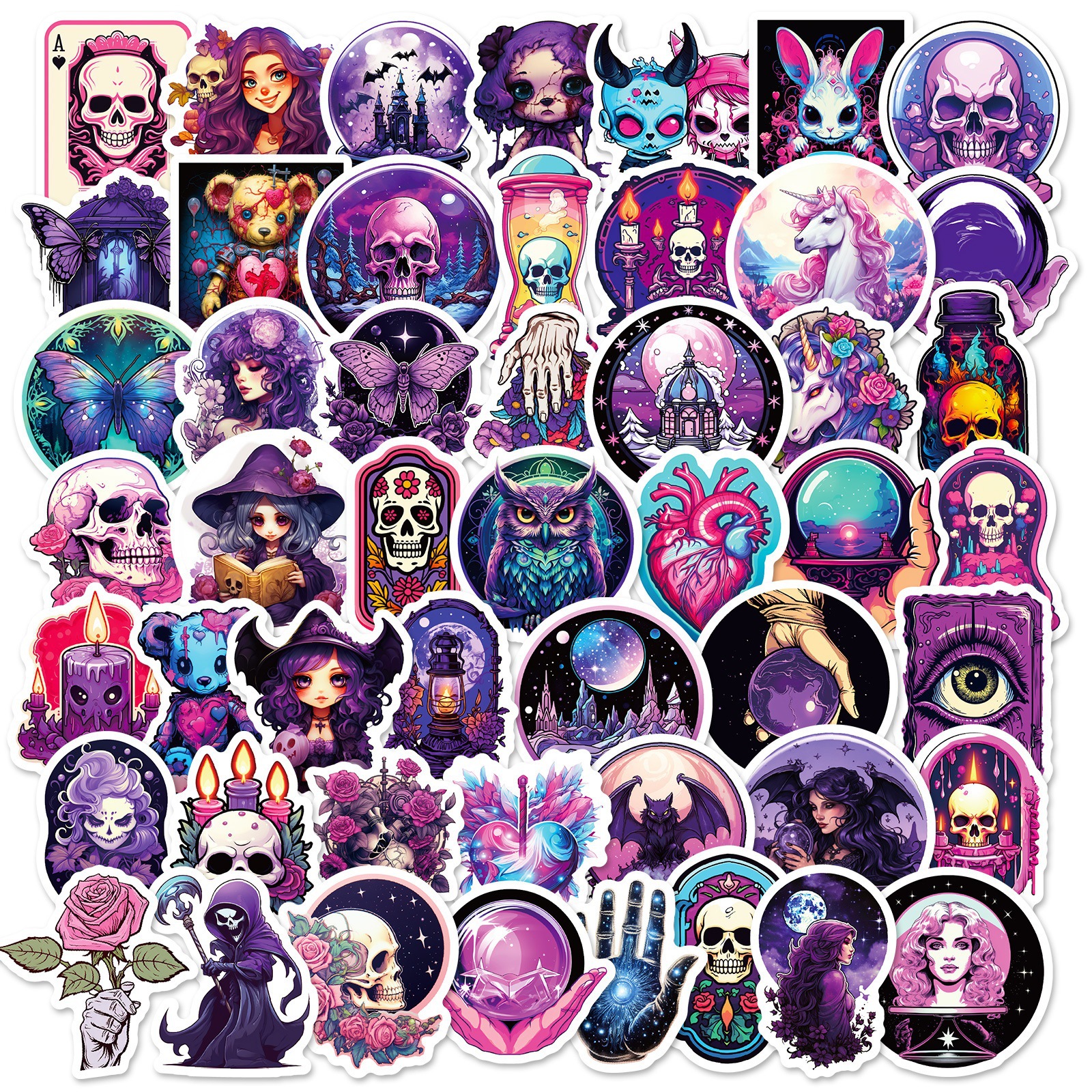 50枚の紫色のゴシック風鬼人形のスカルのステッカーが爆発しました。