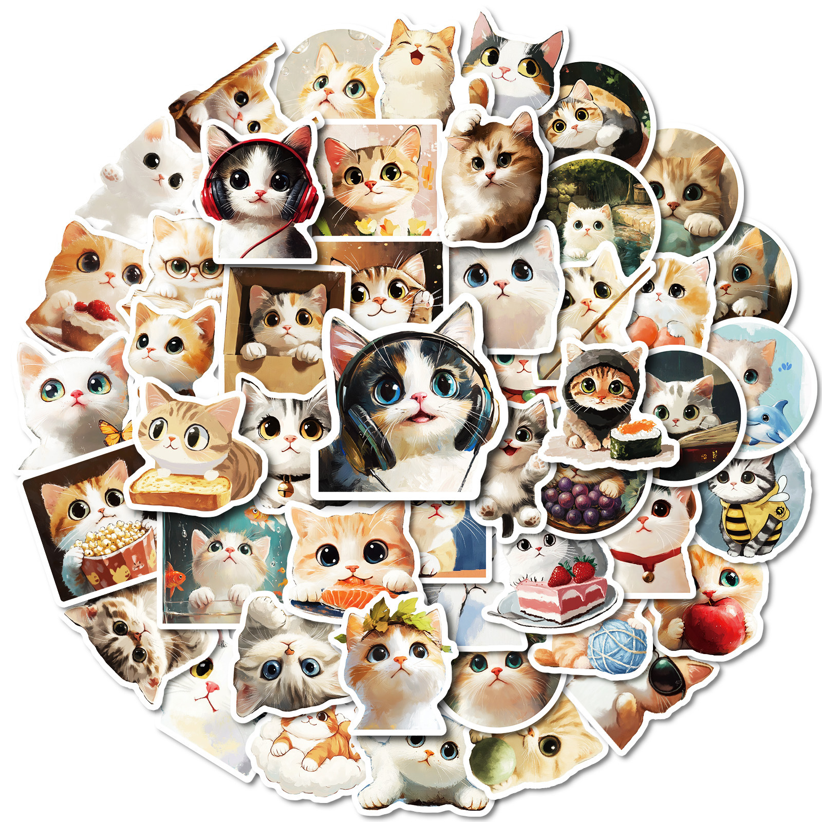 50 枚の油絵猫落書きステッカーかわいい丸顔子猫防水装飾ステッカー DIY 冷蔵庫スケートボードタブレット