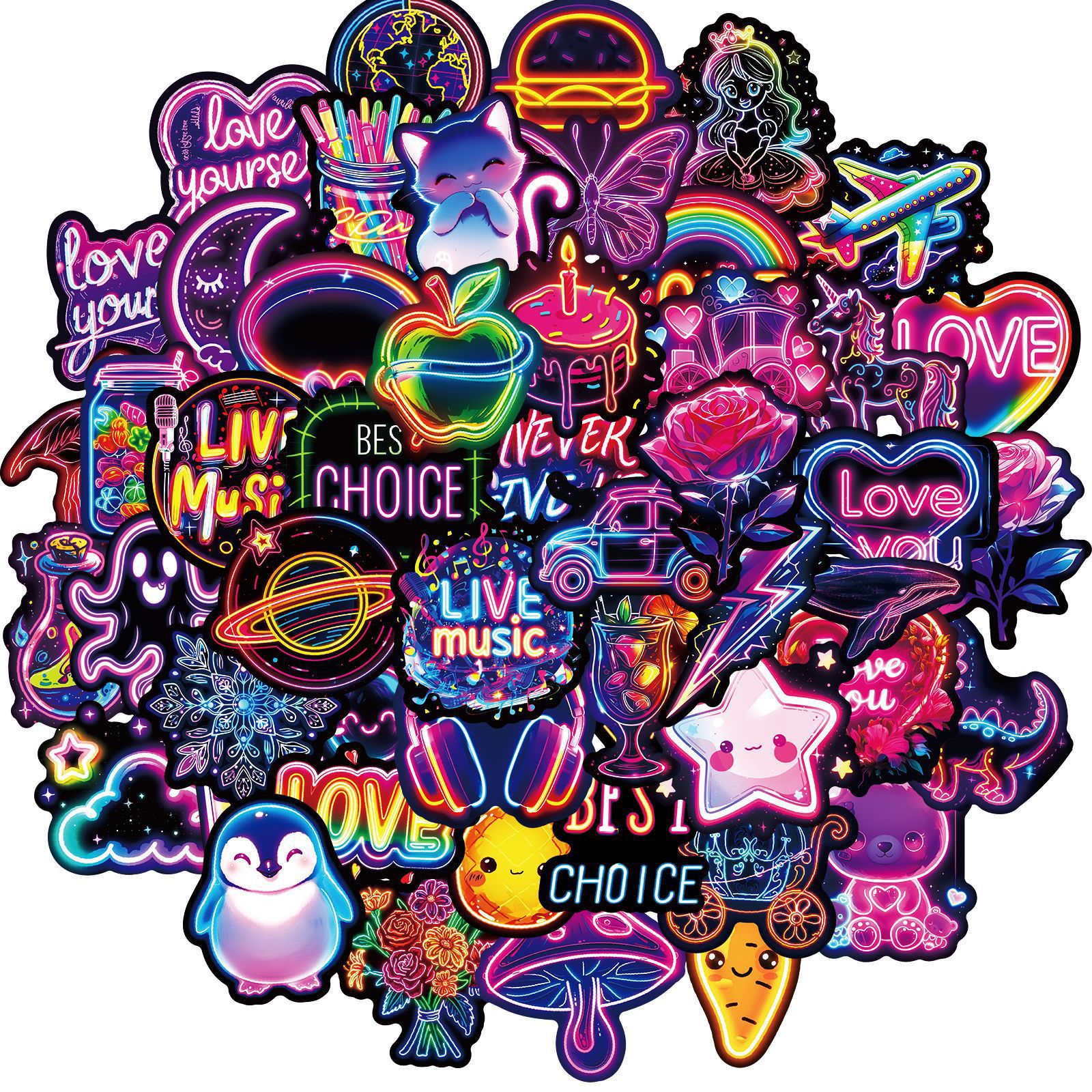 クロスボーダークールネオンステッカー50枚、動物人形、ラブローズ、繰り返しなしの装飾ステッカー