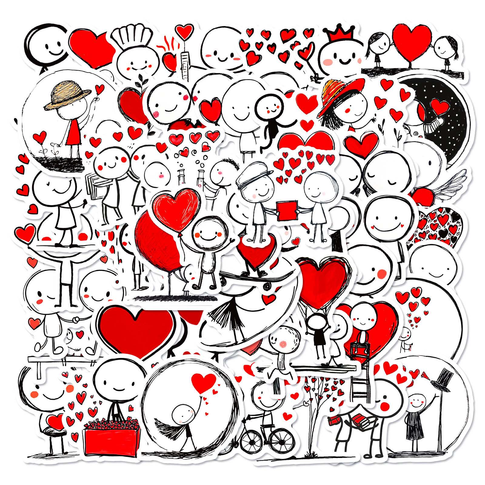 国境を越えた新しい 50 枚の赤い愛のラインの悪役ステッカー、かわいい癒しの DIY ハンドブック、コンピューター ノートブック ステッカー