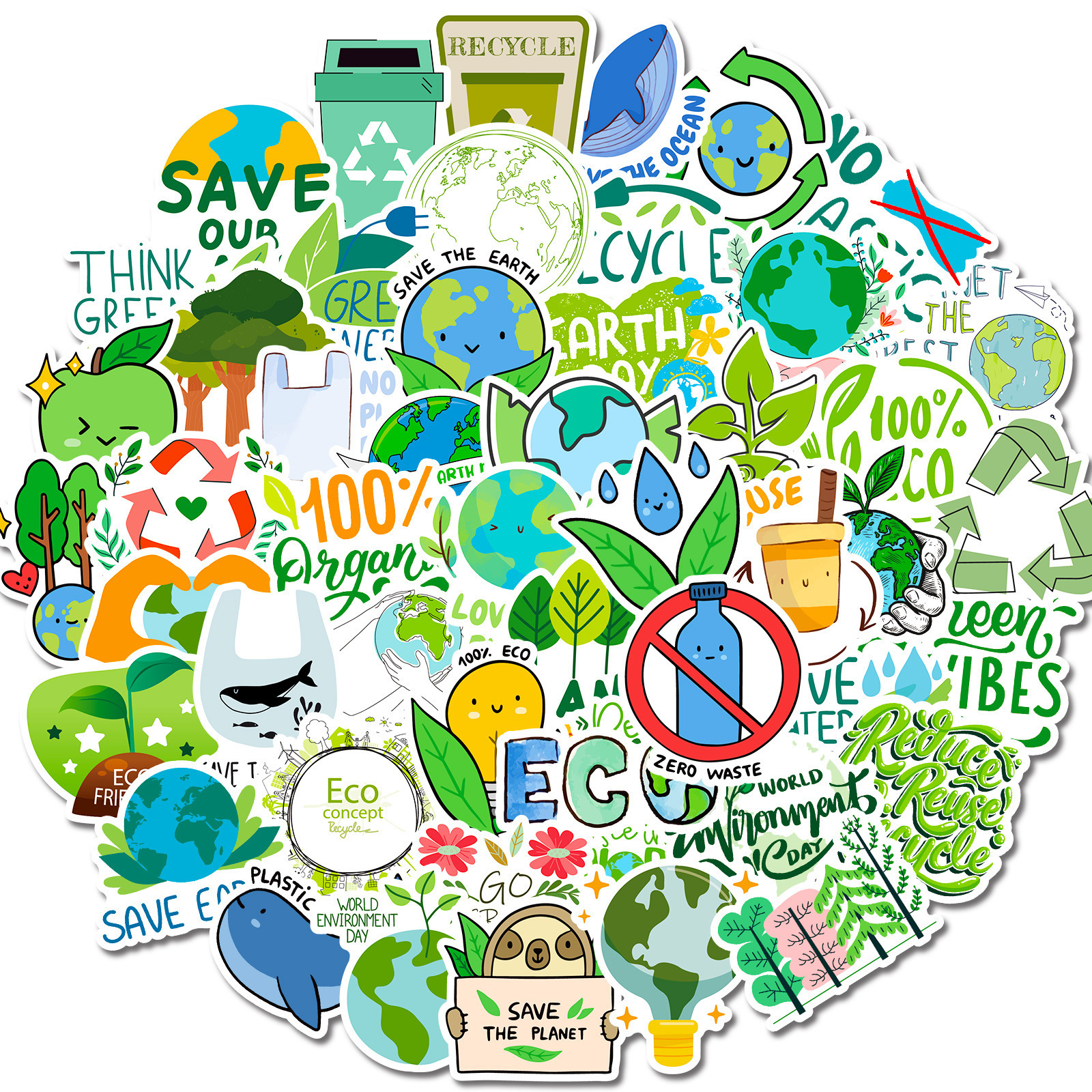 環境保護フレーズ落書きステッカー 50 枚、スーツケースステッカー、既製の携帯電話およびタブレットの装飾ステッカー