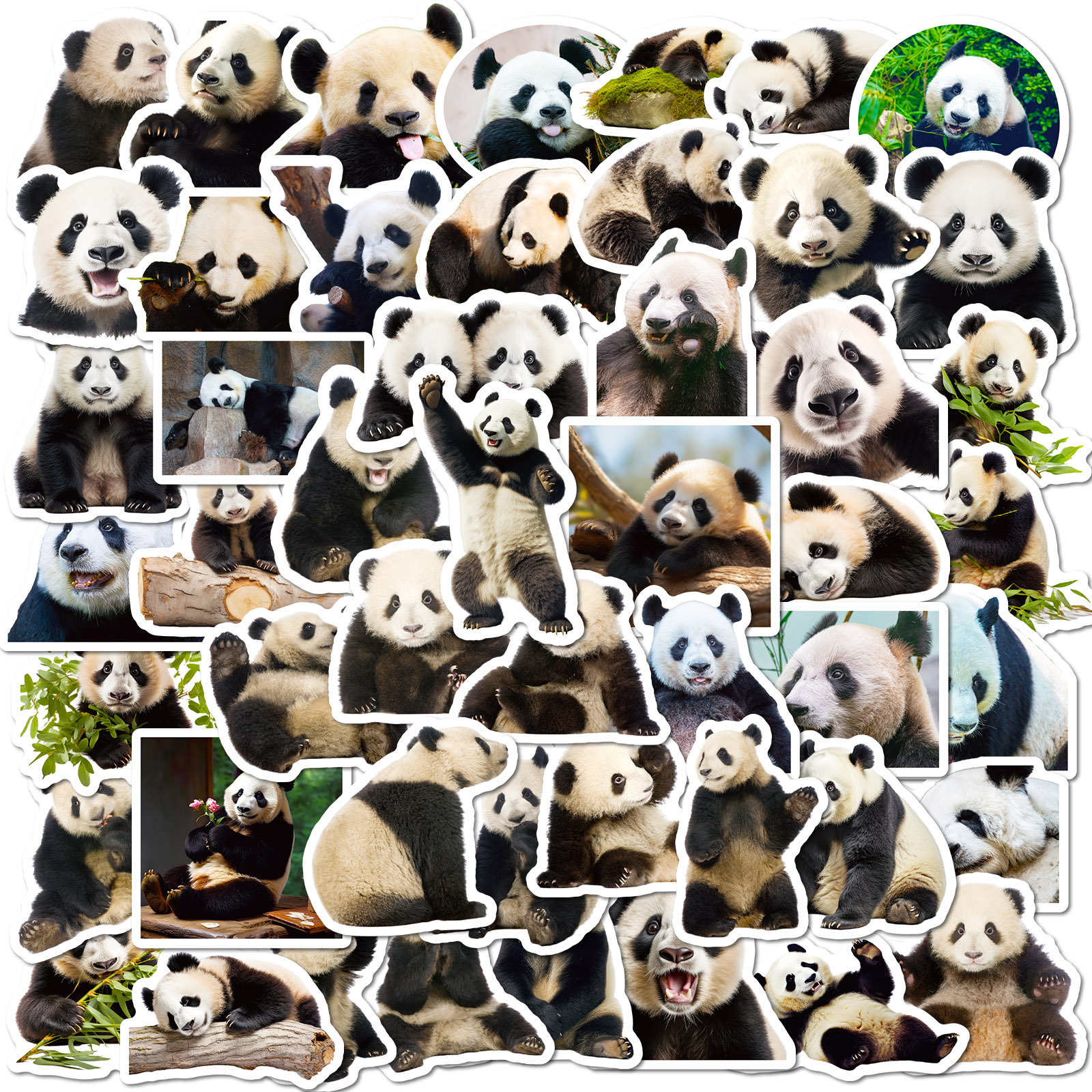50枚のリアルなパンダステッカー、かわいい売れ筋のジャイアントパンダフラワー表現パッケージステッカー、コンピューター携帯電話ウォーターカップステッカー