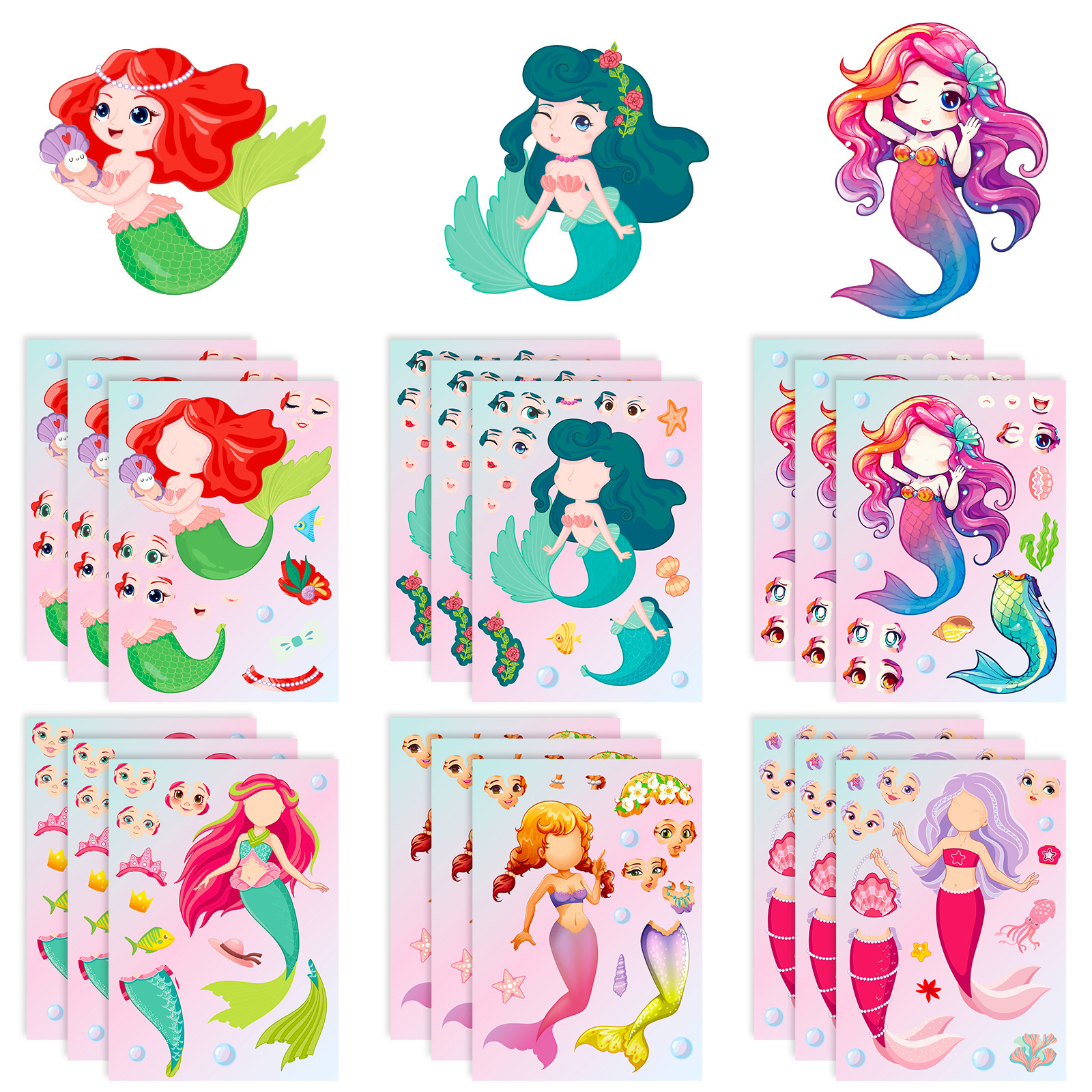 6枚/マーメイドの顔を包むステッカー