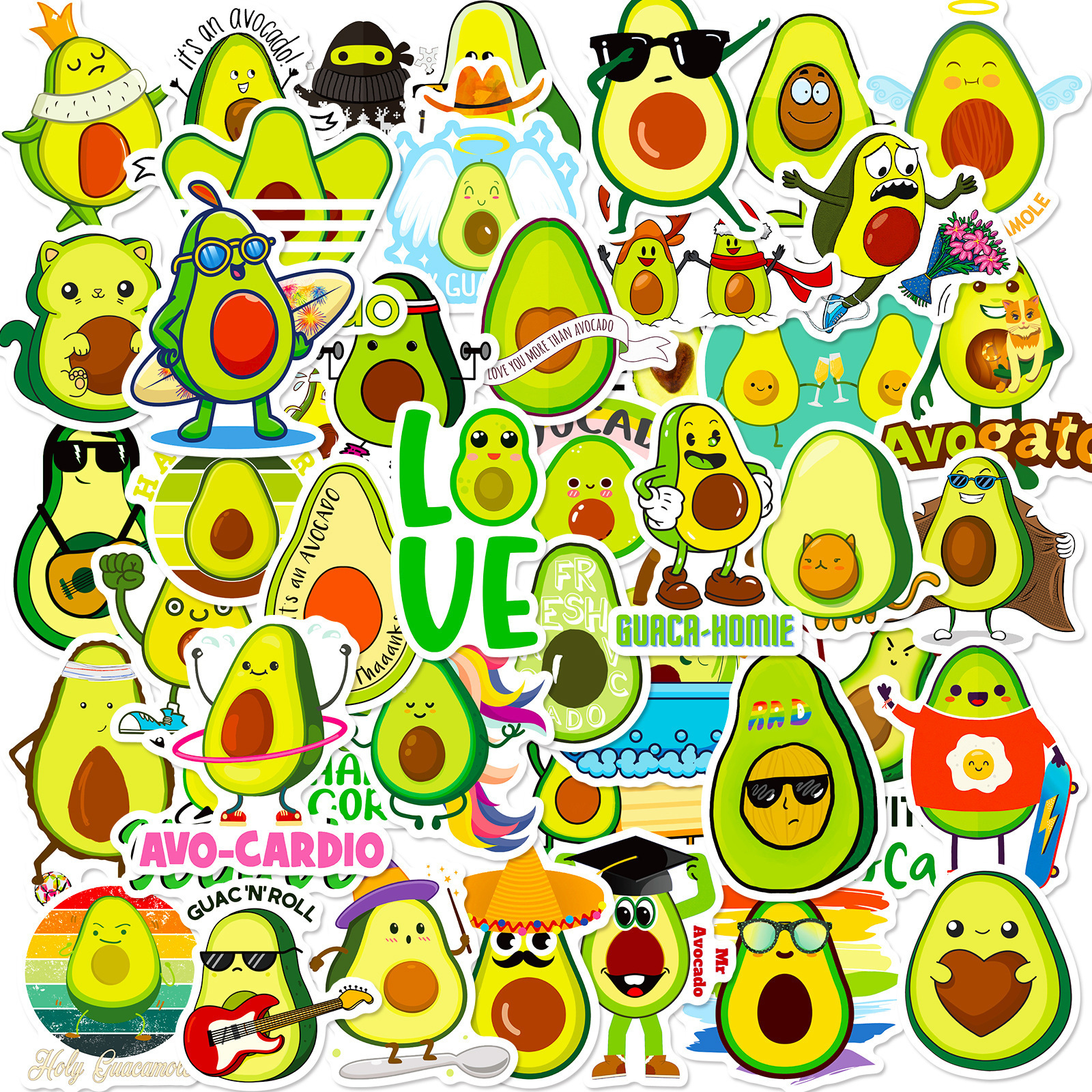 50枚の漫画アボカドステッカー、キュートでかわいいクロスボーダーアボカドステッカー、インターネットセレブフルーツインスタイルパーソナライズステッカー