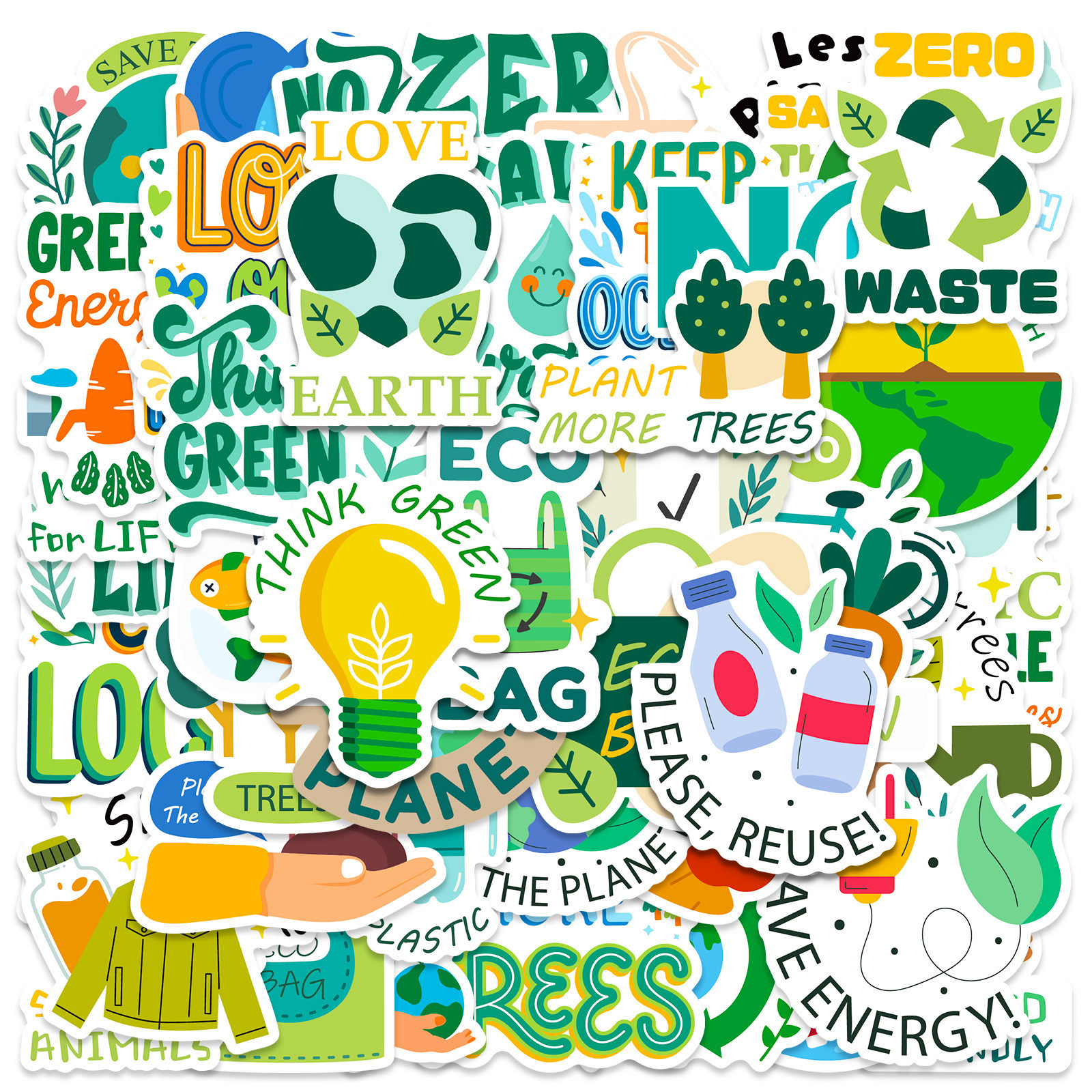 環境保護フレーズ落書きステッカー 50 枚、スーツケースステッカー、既製の携帯電話およびタブレットの装飾ステッカー
