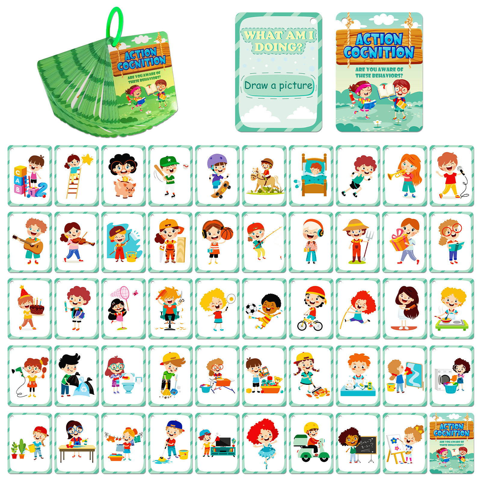 50枚の行動認知教育カード、子供の教育早期教育啓発カード、両面楽しい知育玩具カード